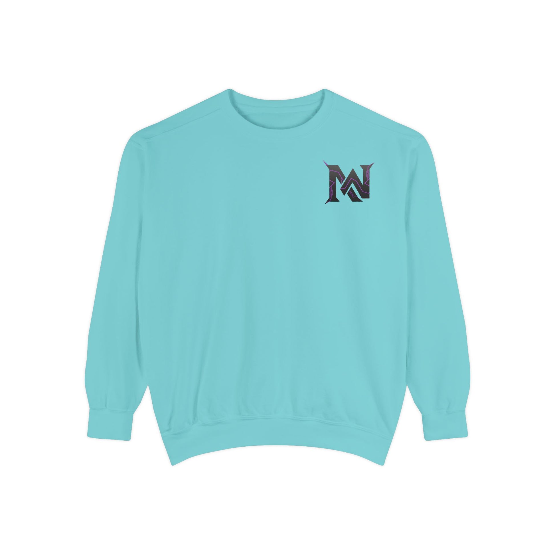 A relaxed, garment-dyed sweatshirt that feels lived-in from the first wear. Soft 80/20 ring-spun cotton blend with a medium-heavy weight drapes comfortably while holding its shape. Subtle details — a half-moon neck patch, ribbed collar, cuffs and hem, and sewn-in twill label — give it a crafted, durable feel. The design uses embroidered or printed accents on the chest and a bold back print that reads “THE REAL BATTLE IS IN YOUR MIND” set in a textured purple cloud, making this piece both a statement and a daily companion. Low-impact OEKO-TEX dyes and stable necktape add thoughtful finishing touches for long-term comfort and wear.